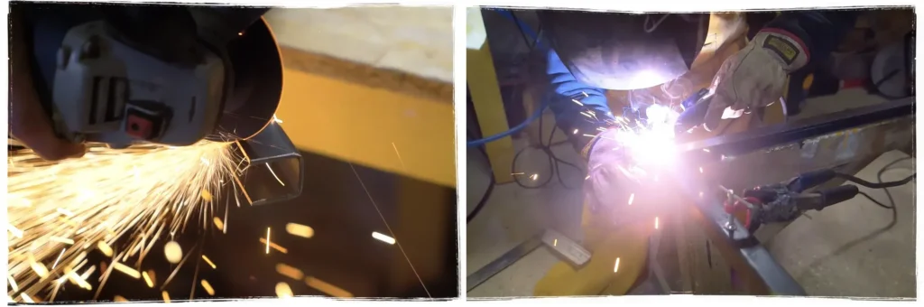 À l’aide d’une meuleuse, j’ai découpé les cornières en onglet pour des angles nets et un rendu soigné.